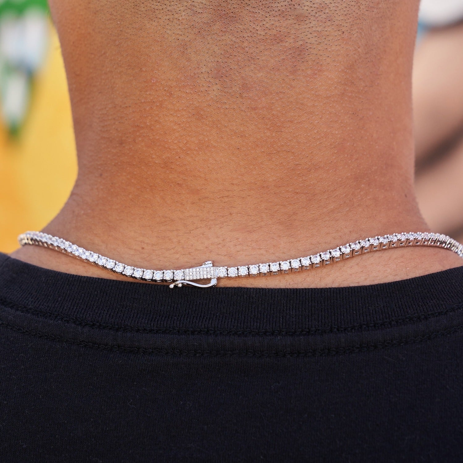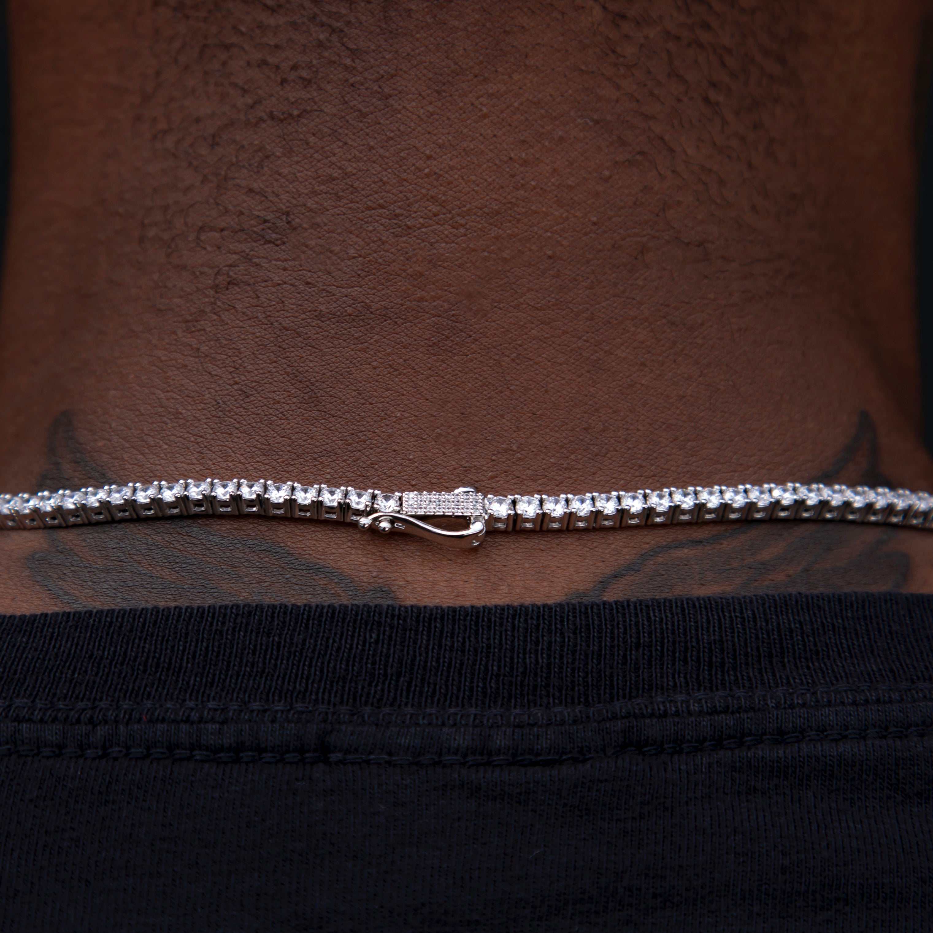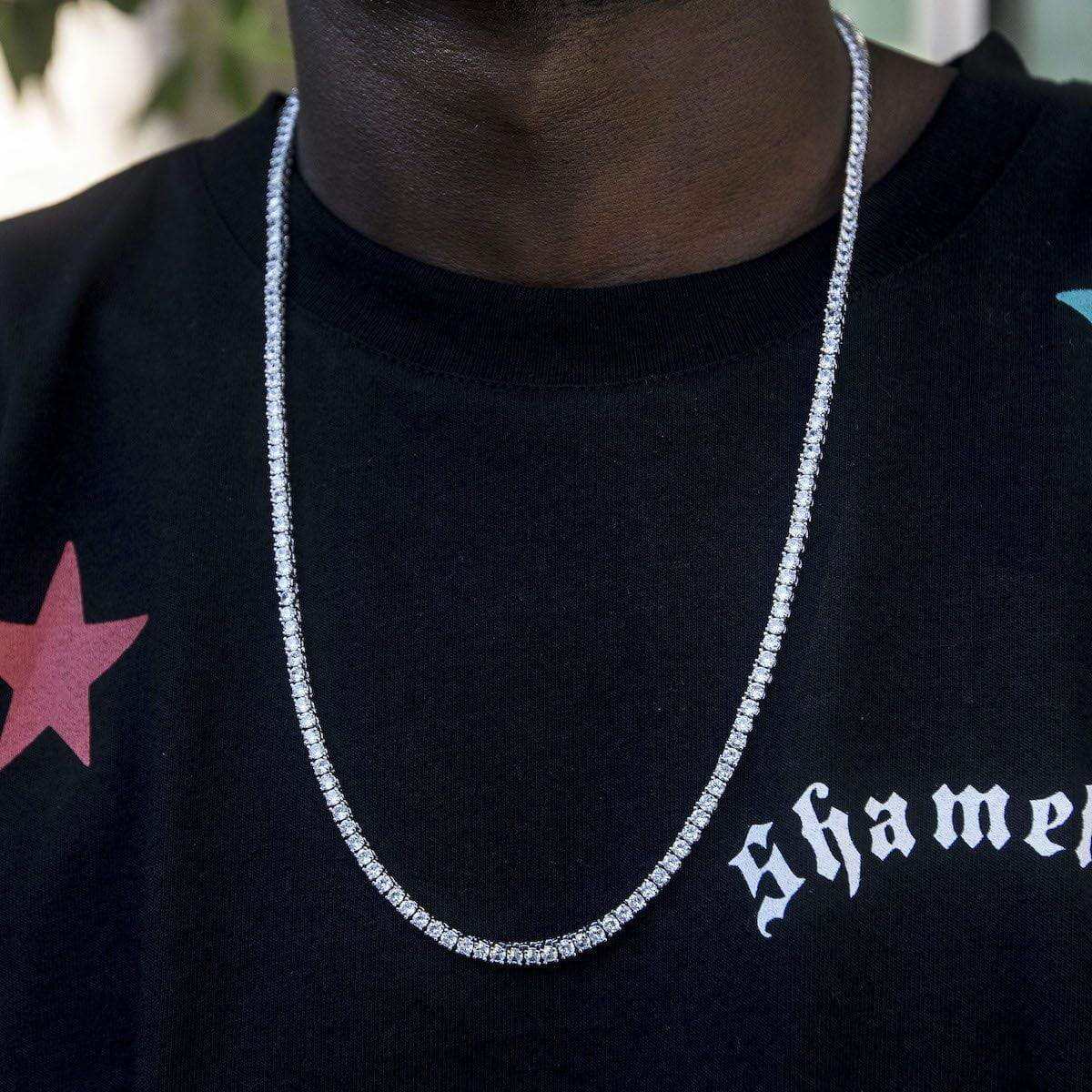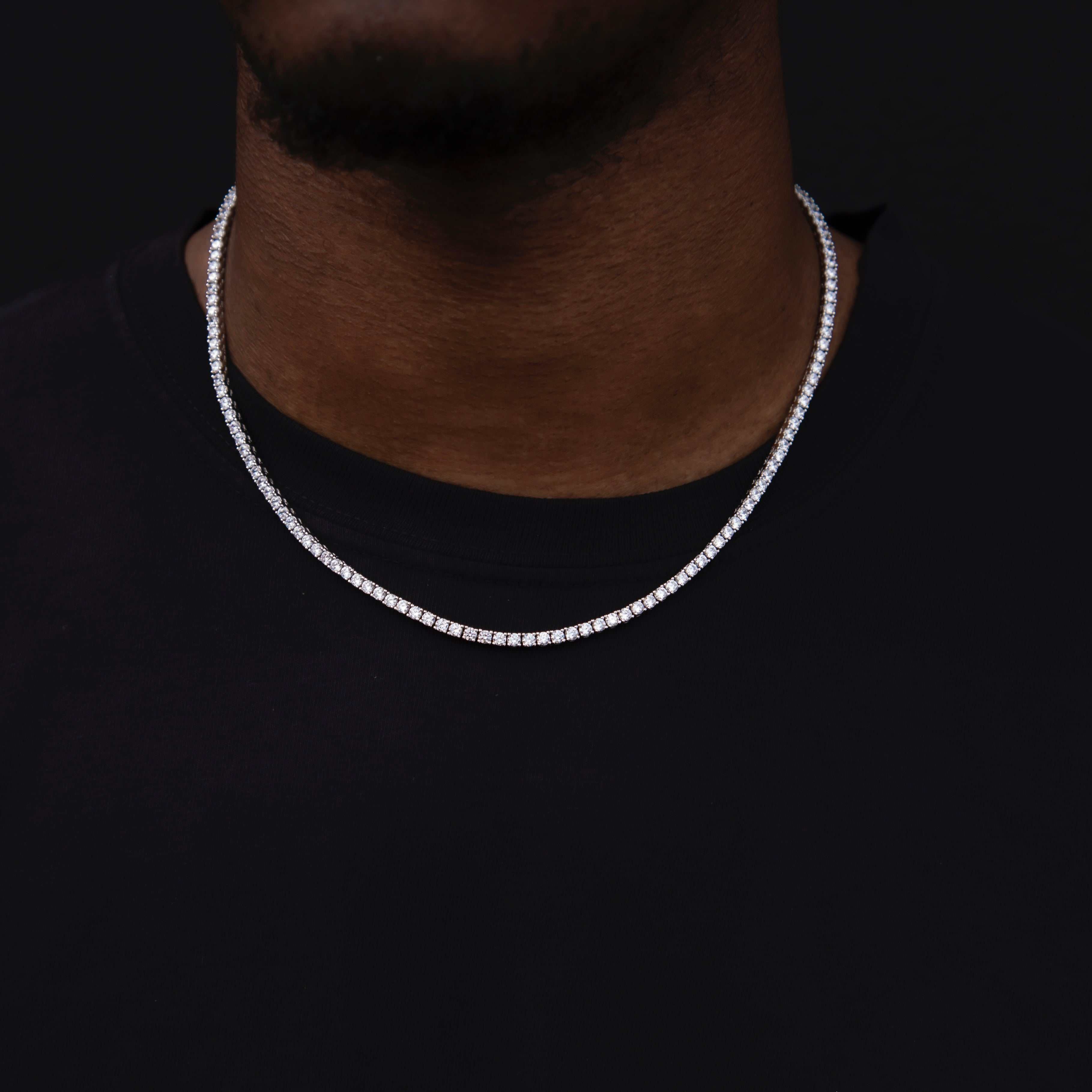 Round Cut Tennis Necklace in White Gold - 3mm