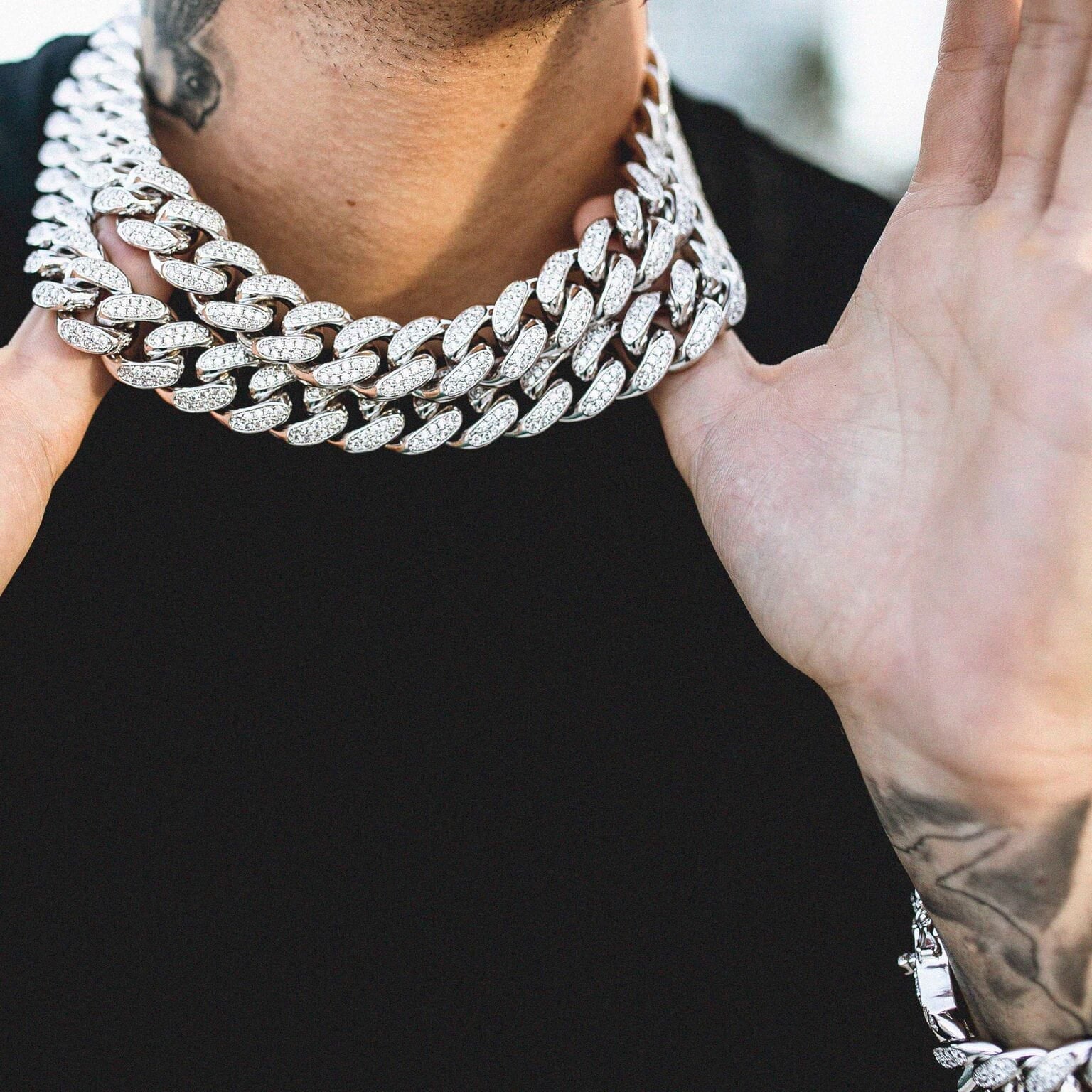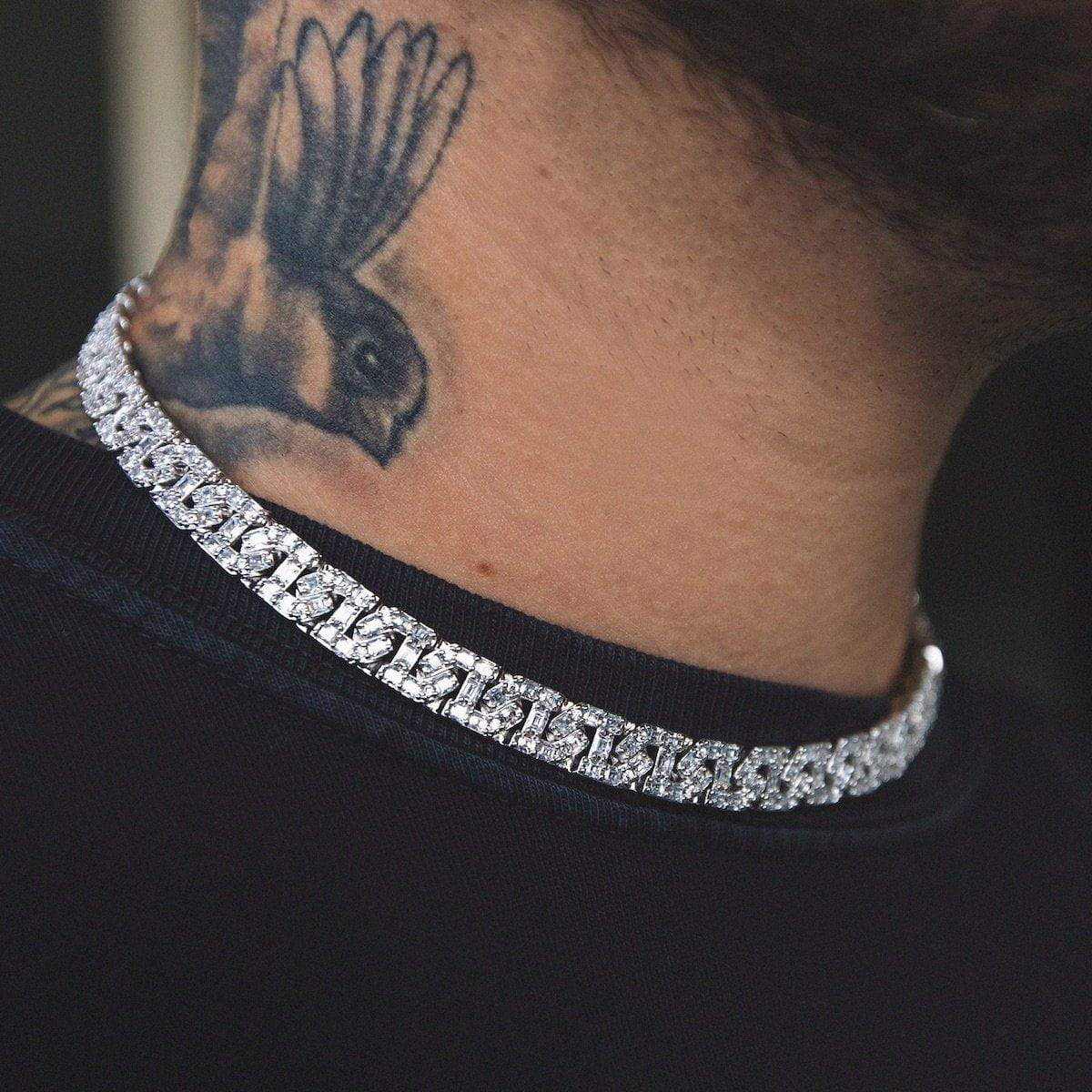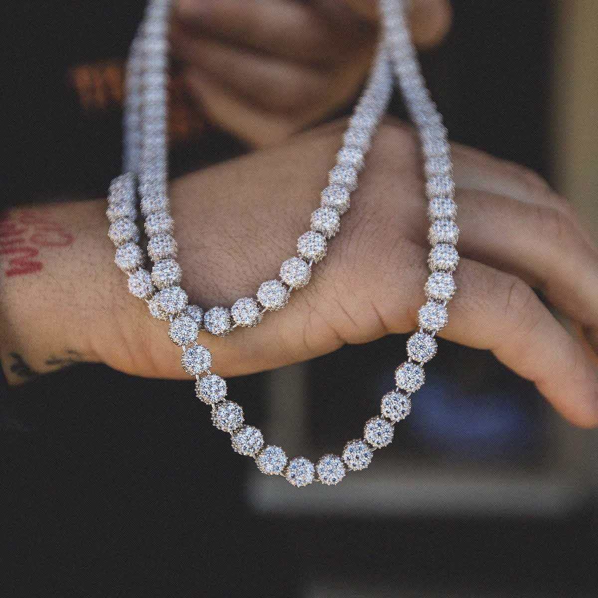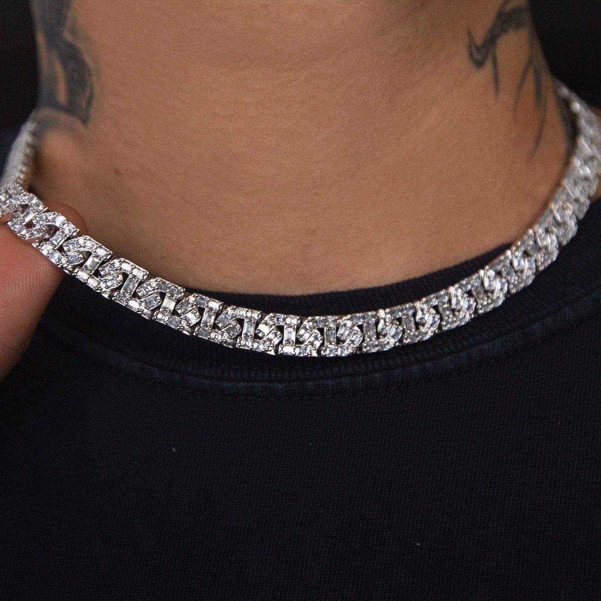 Iced Barbed Wire Chain in White Gold