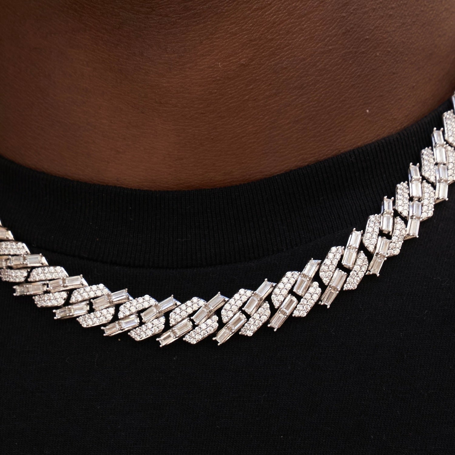 12mm Mixed Stone Diamond Cuban Necklace - White Gold