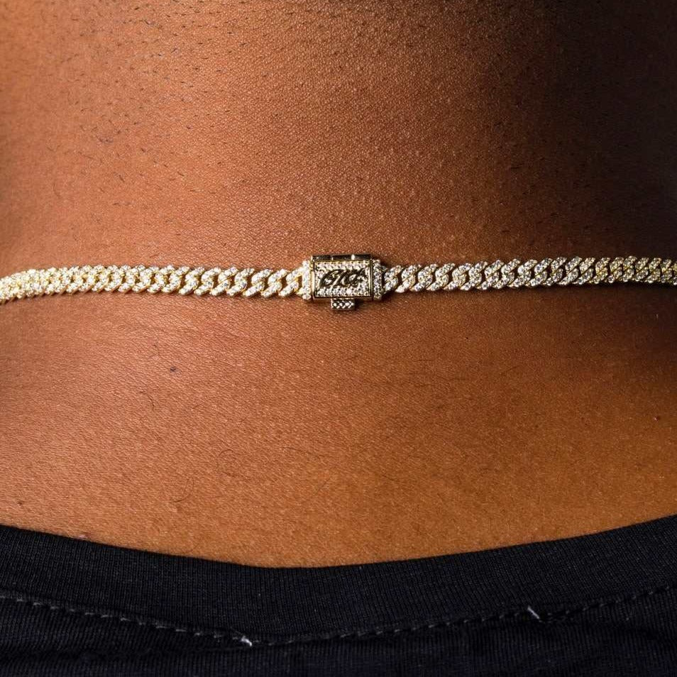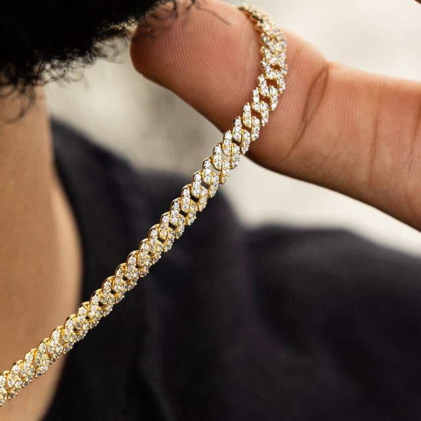 Micro Diamond Prong Cuban Necklace - Yellow Gold