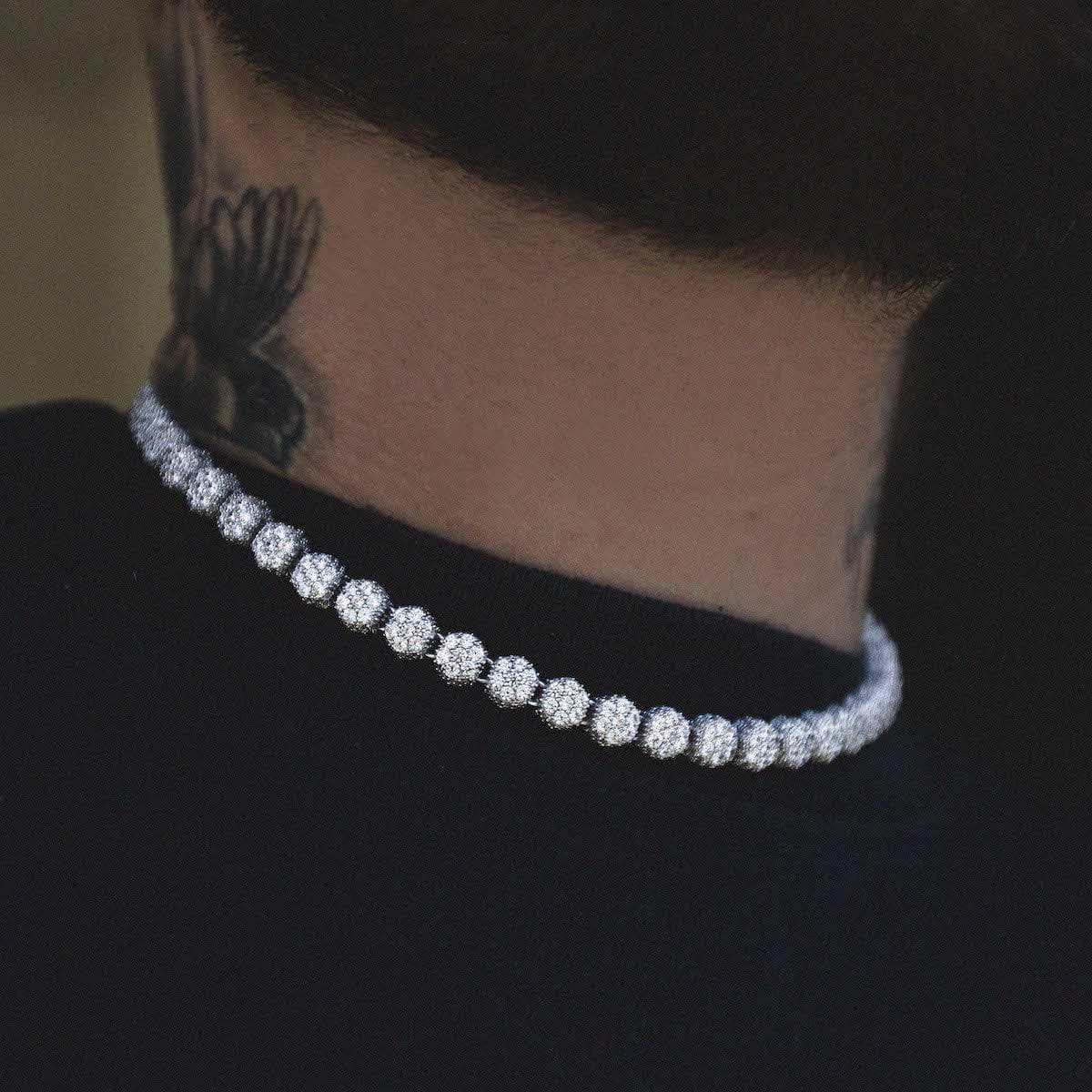 Pave-Set Clustered Tennis Necklace in White Gold