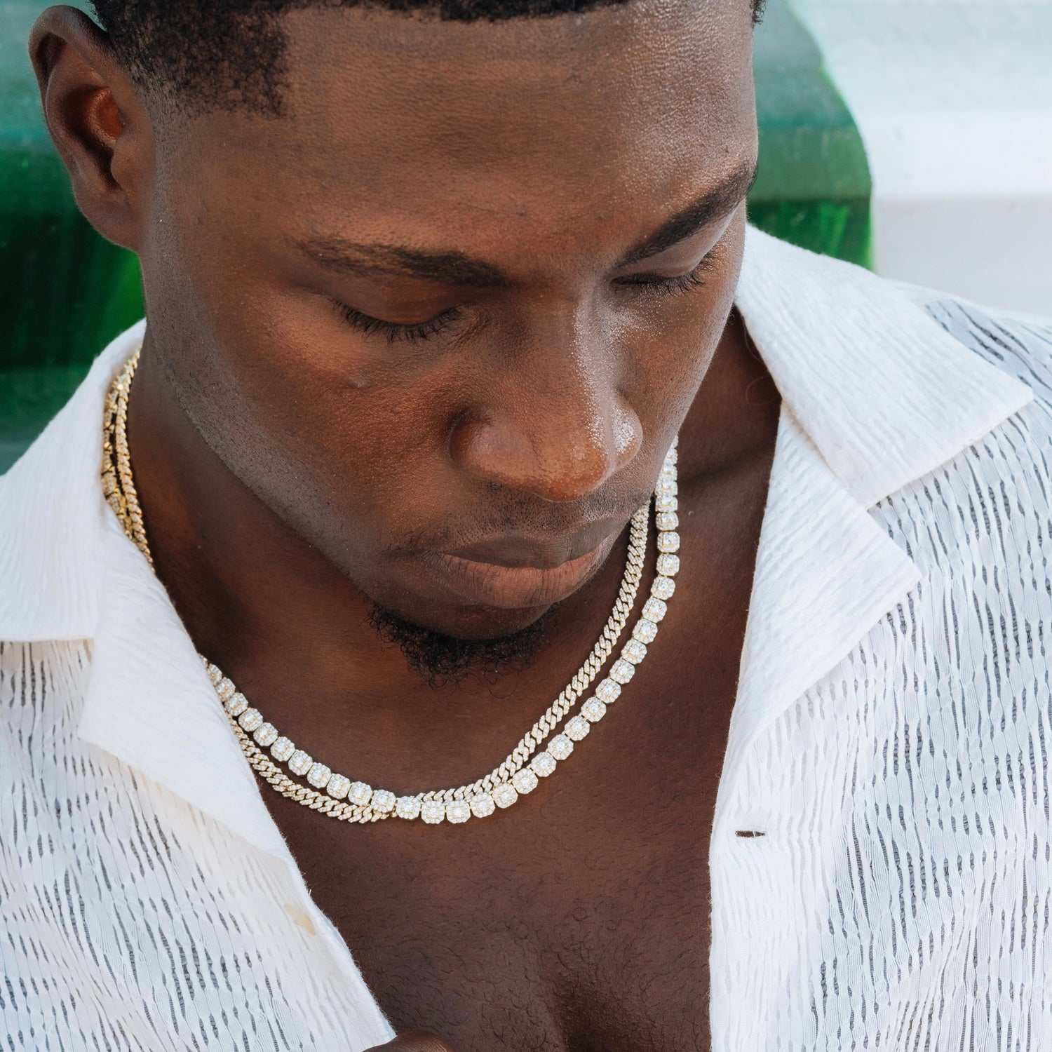 12mm Mixed Stone Diamond Cuban Necklace - Yellow Gold