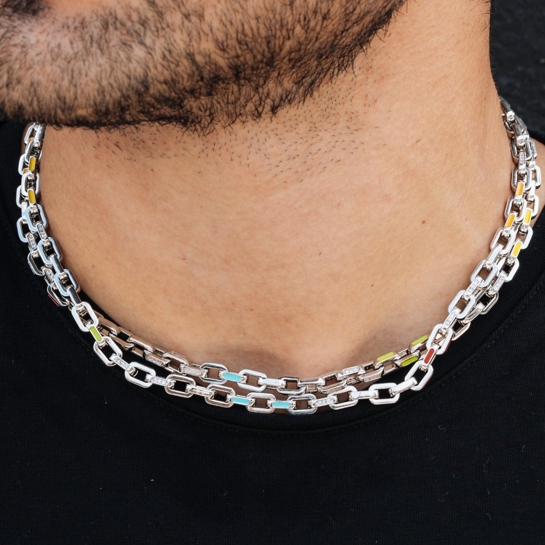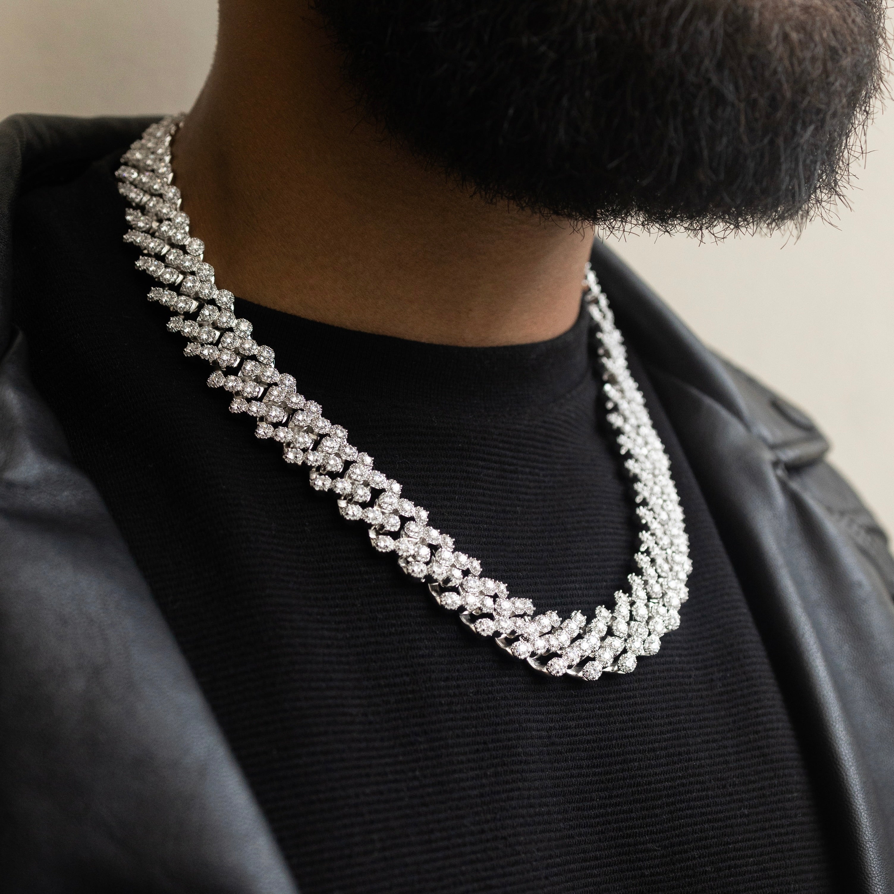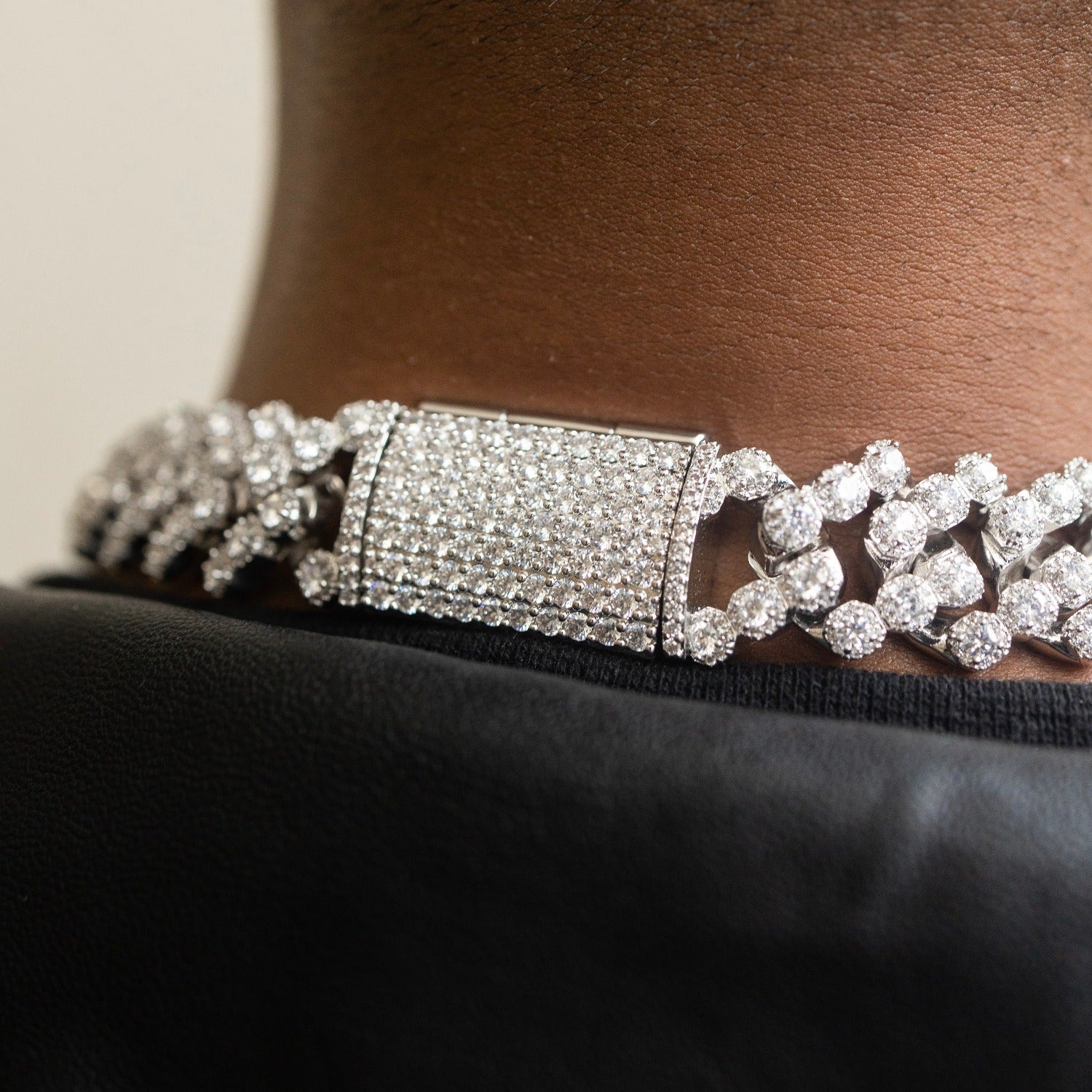 19mm Diamond Clustered Cuban Necklace - White Gold