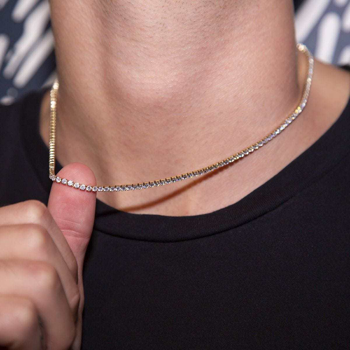 Round Cut Tennis Necklace in Yellow Gold - 5mm