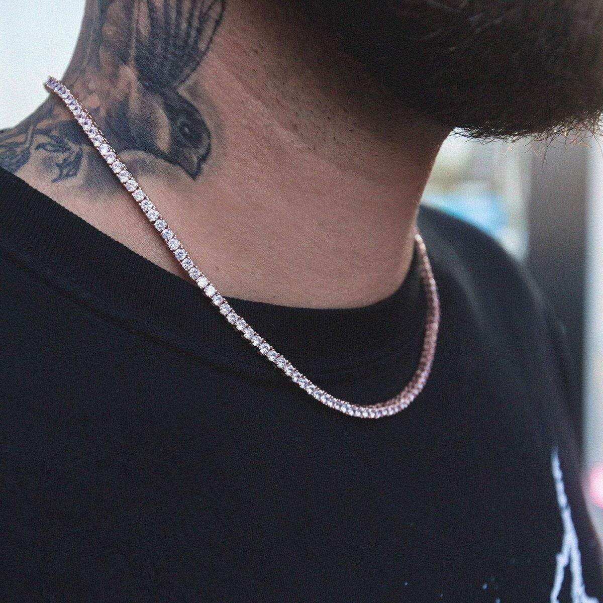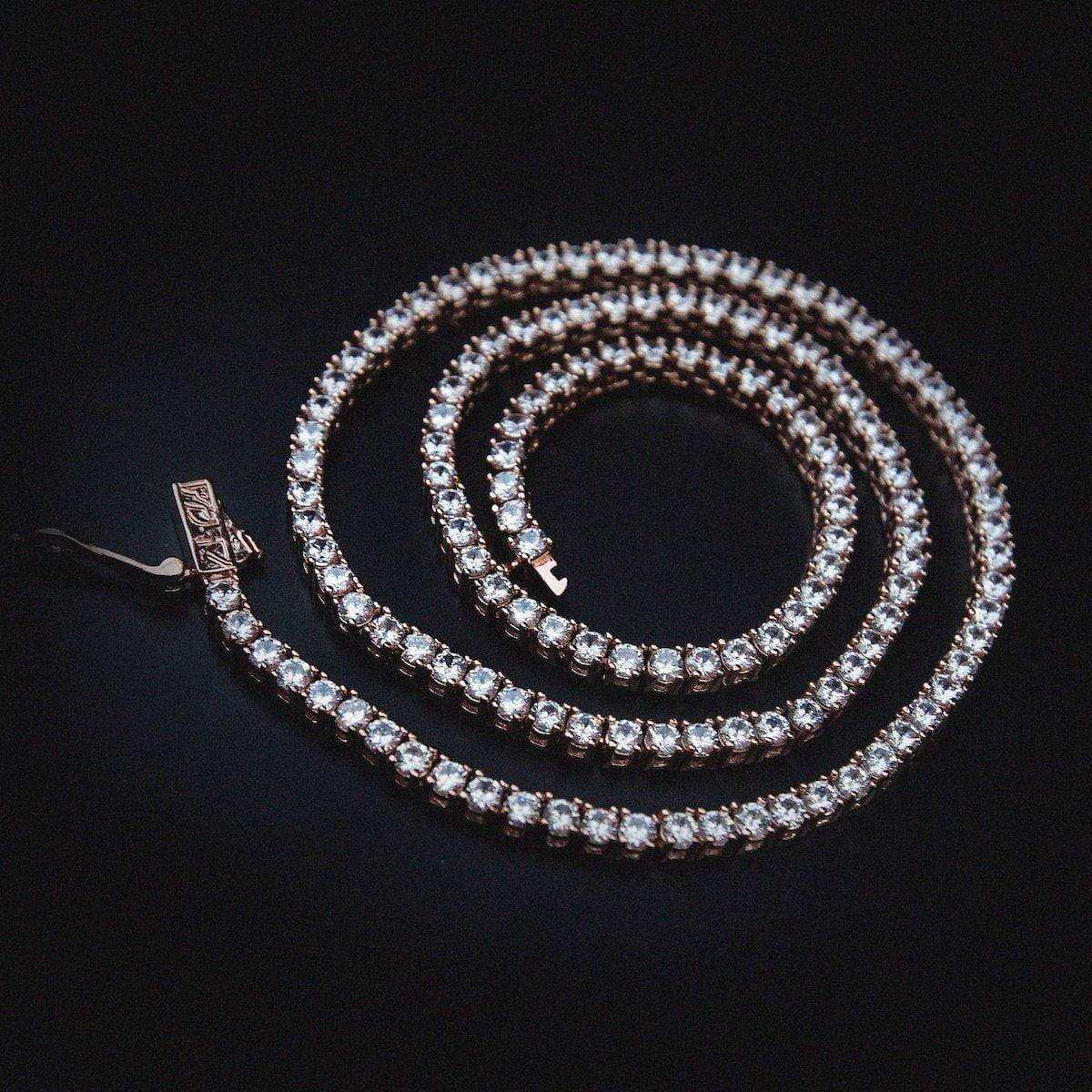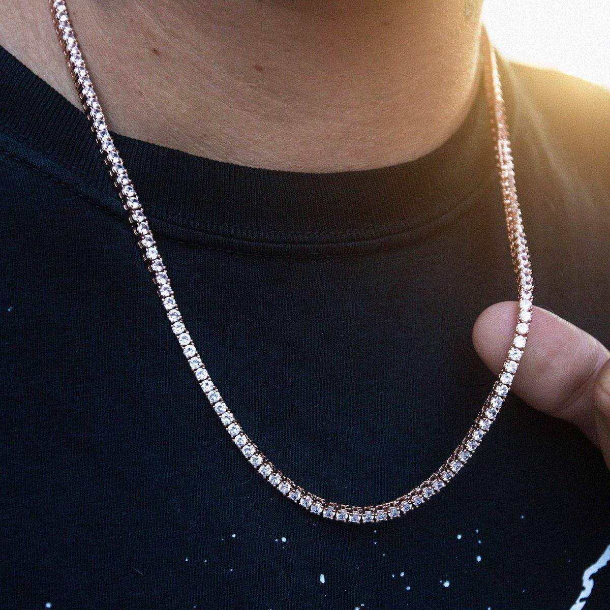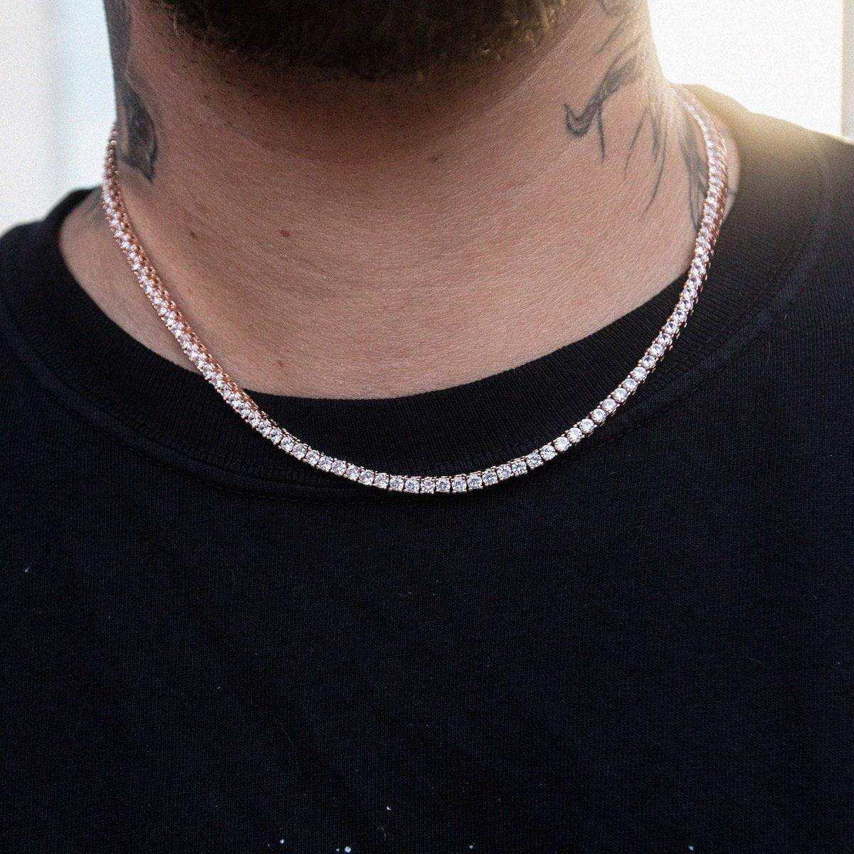 Round Cut Tennis Necklace in Rose Gold - 3mm