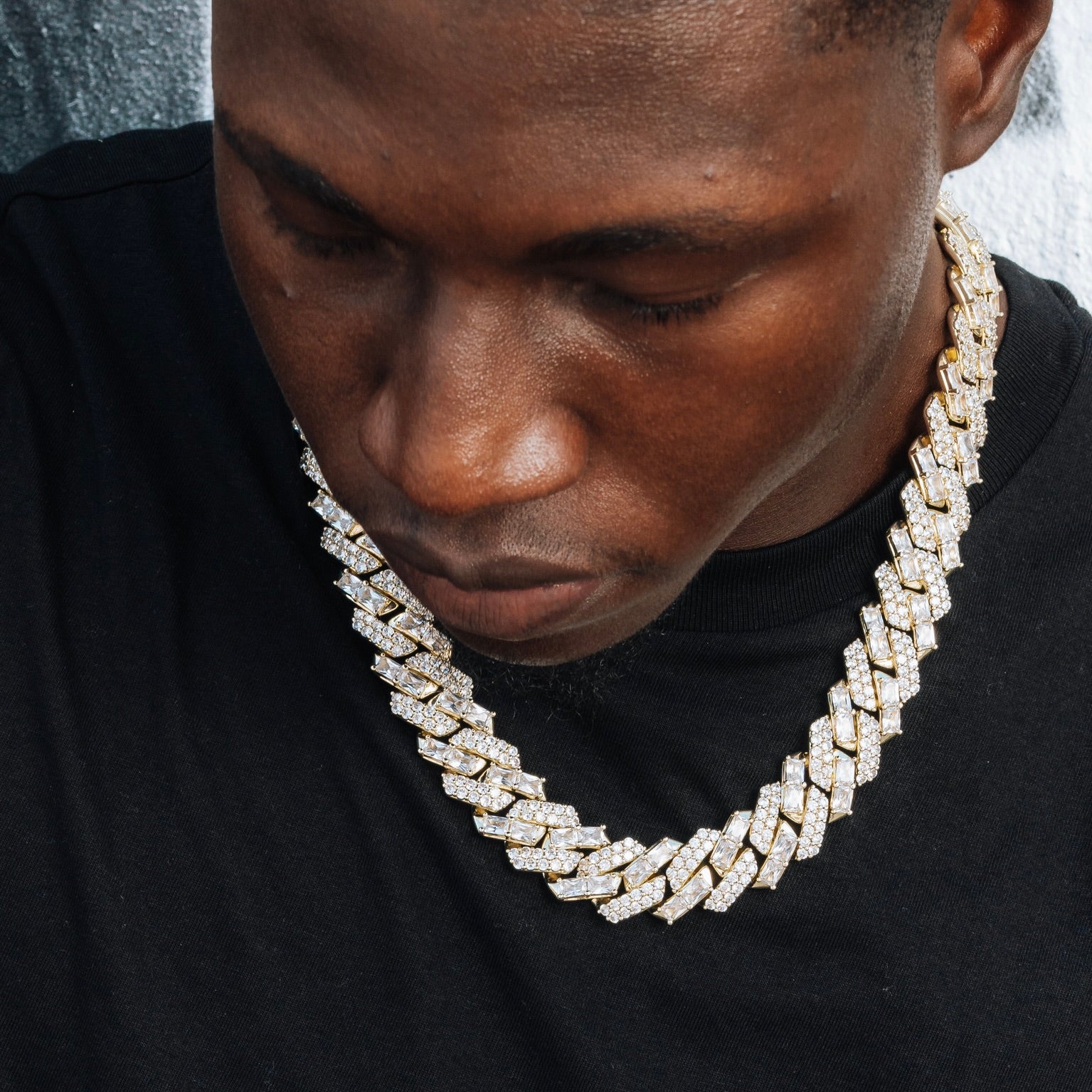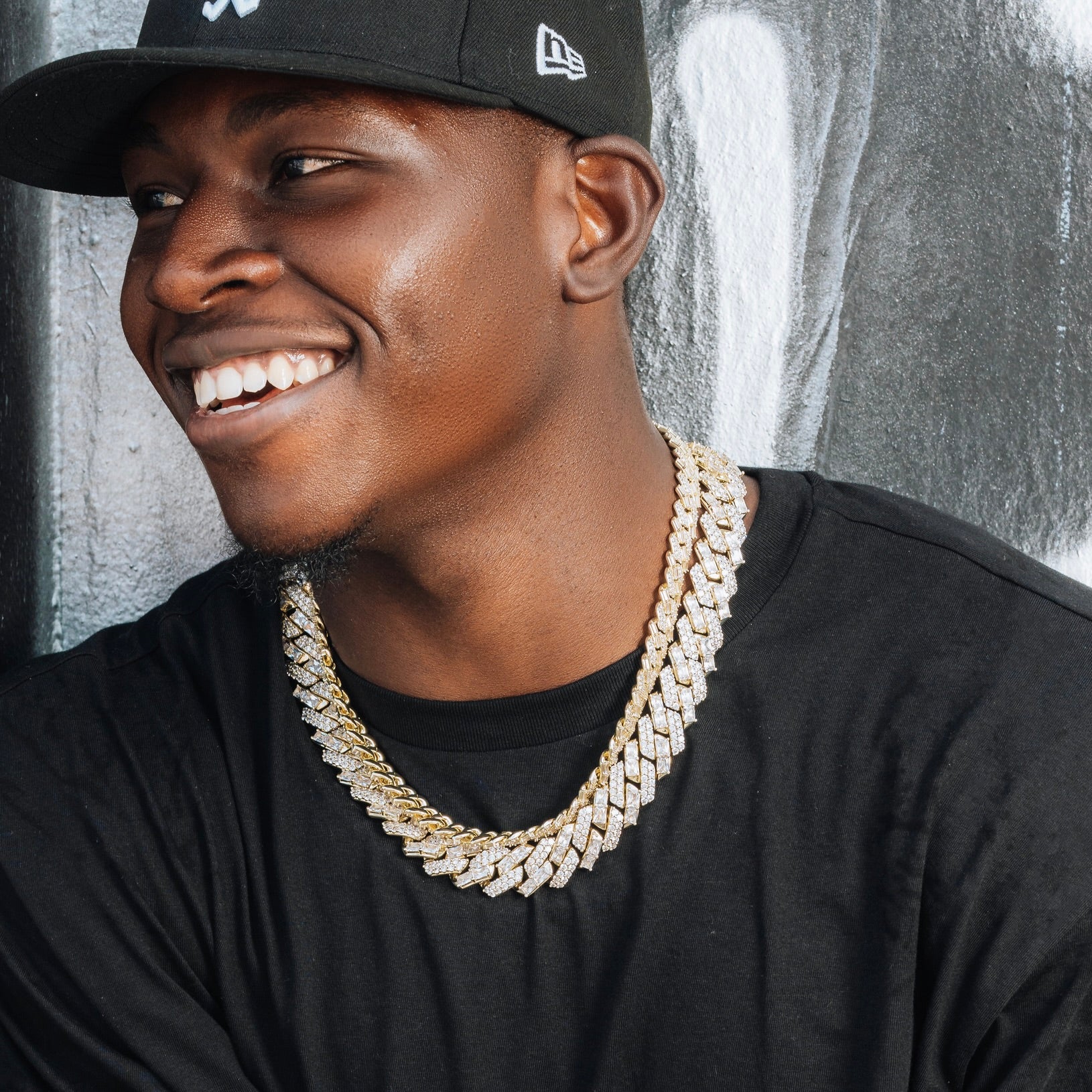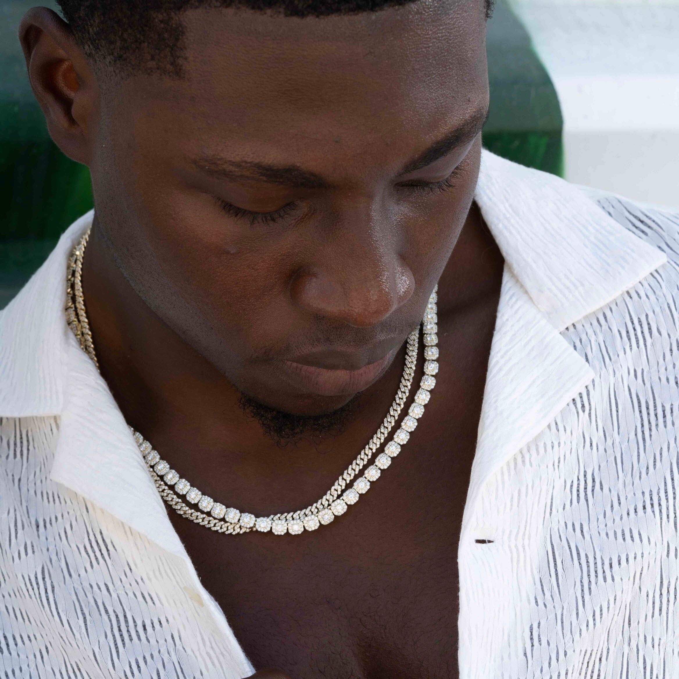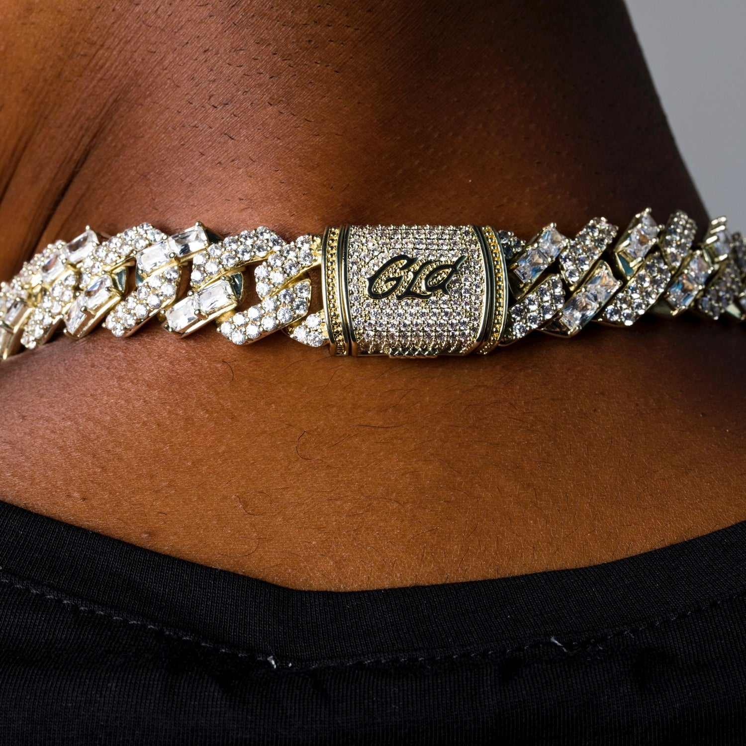 19mm Mixed Stone Diamond Cuban Necklace - Yellow Gold