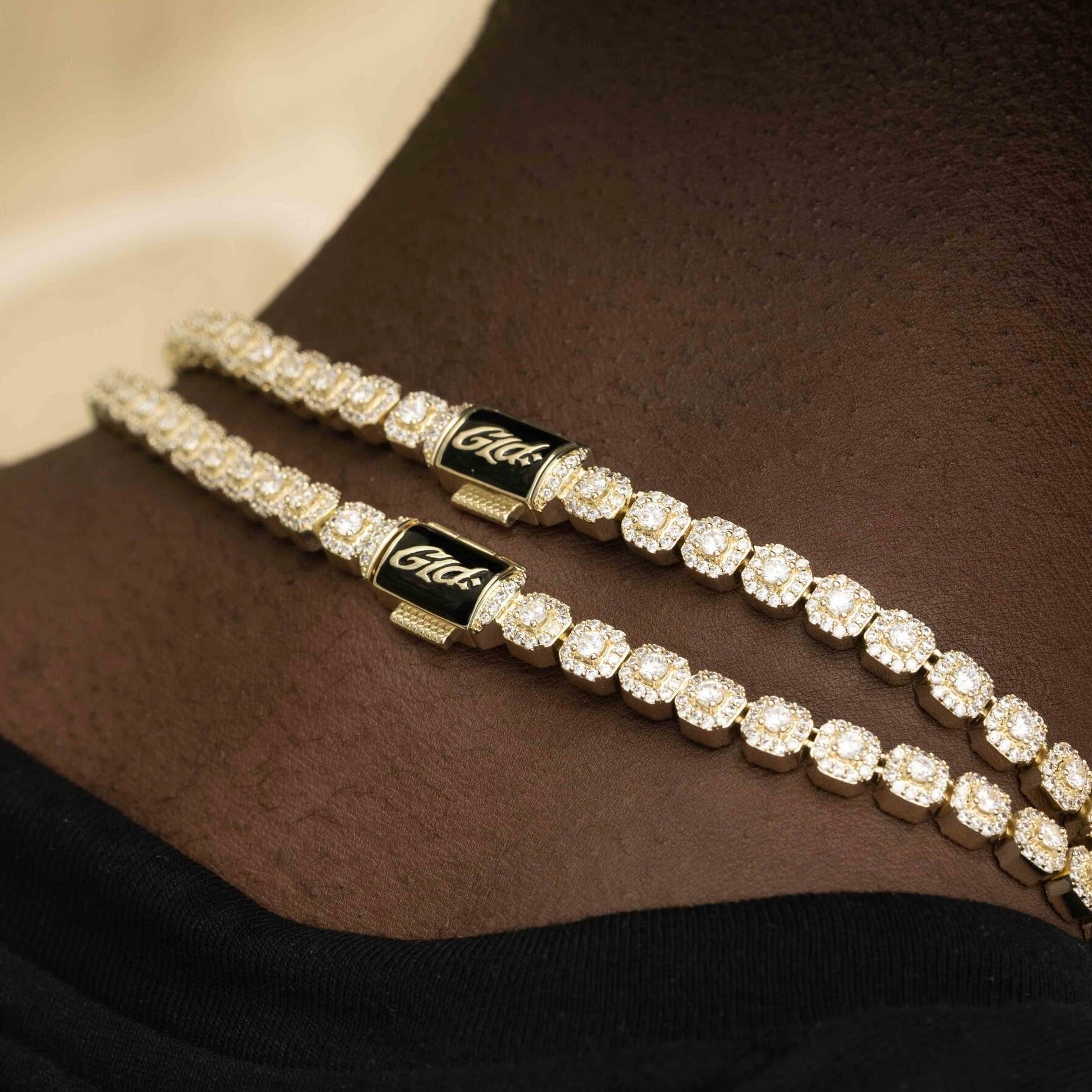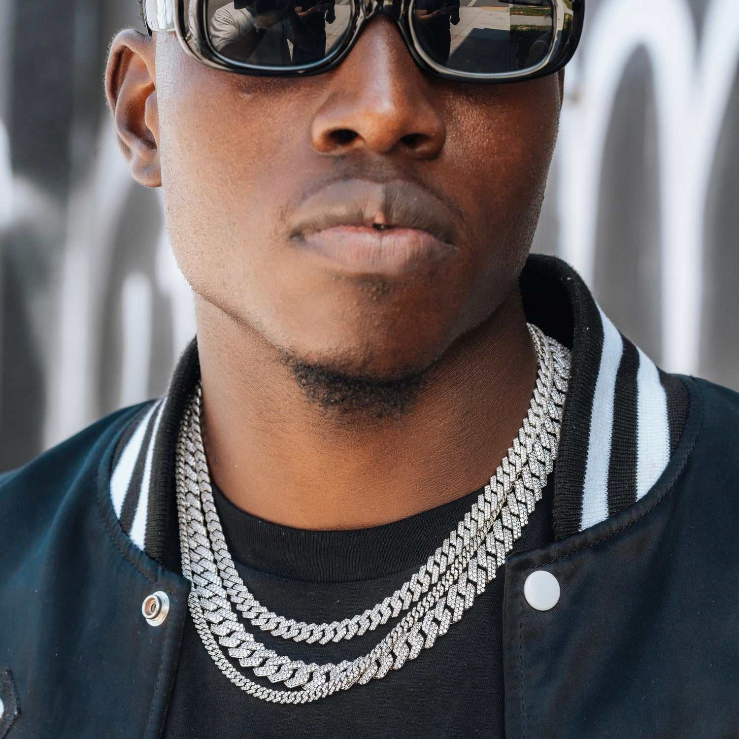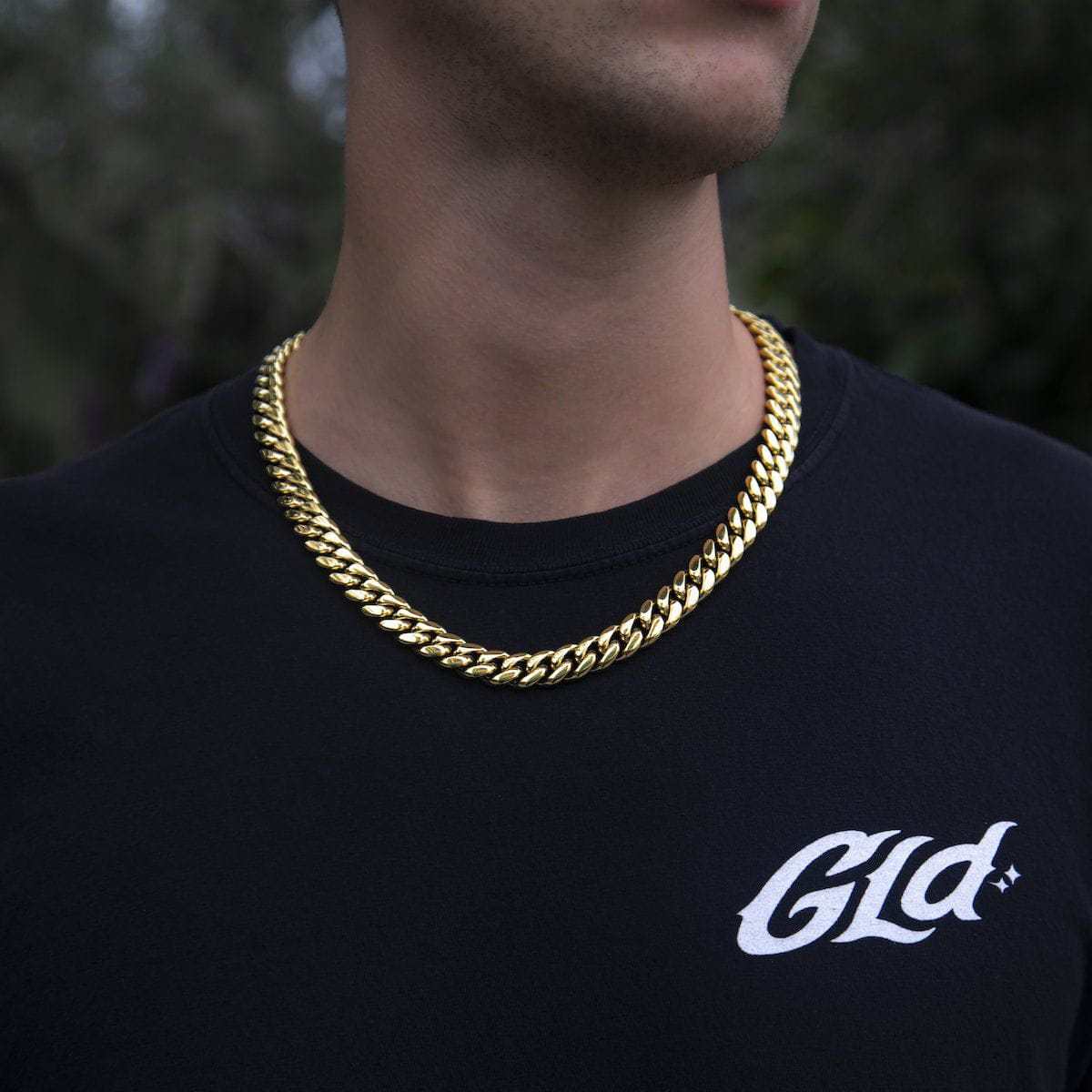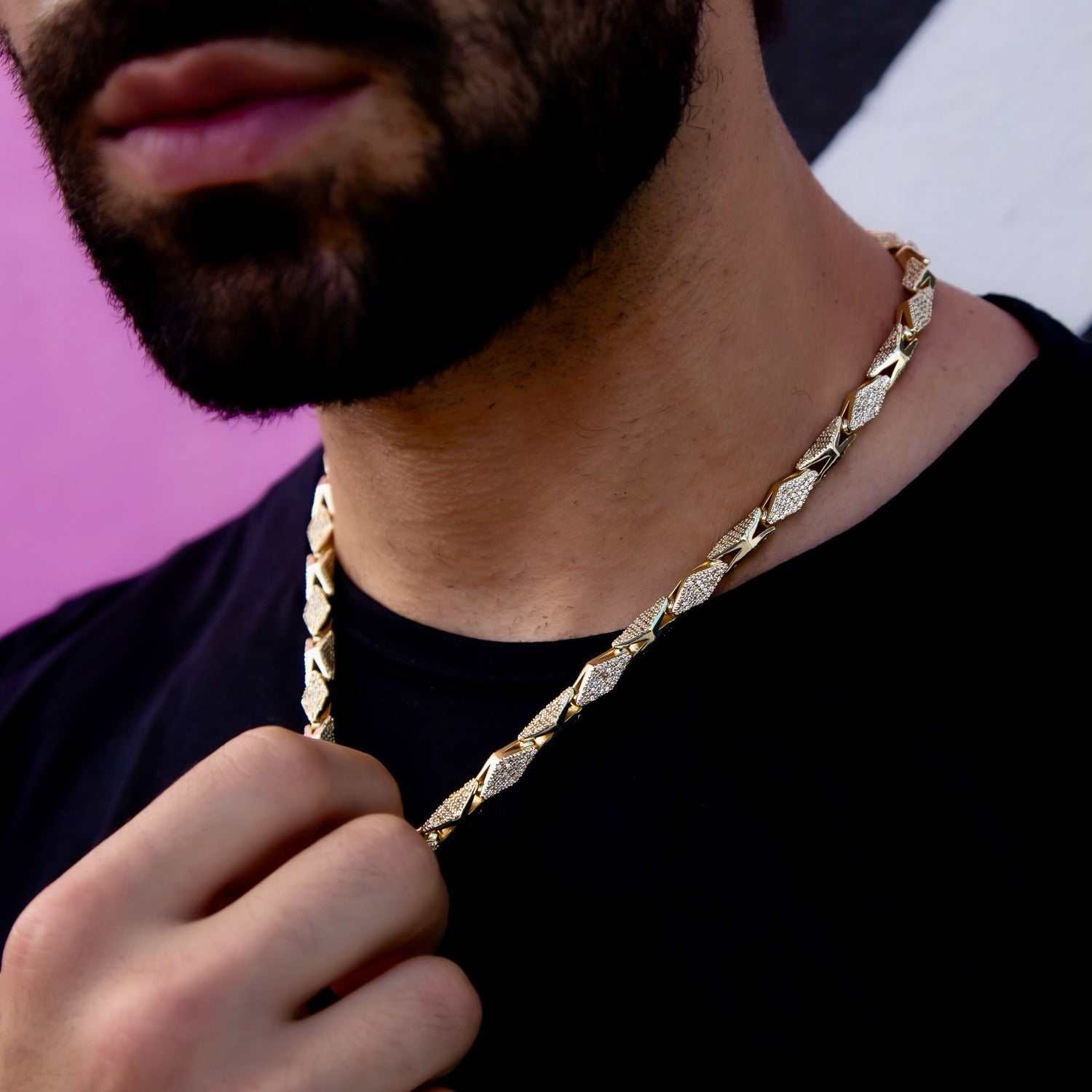 19mm Mixed Stone Diamond Cuban Necklace - Yellow Gold