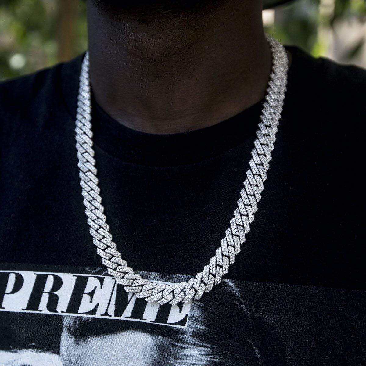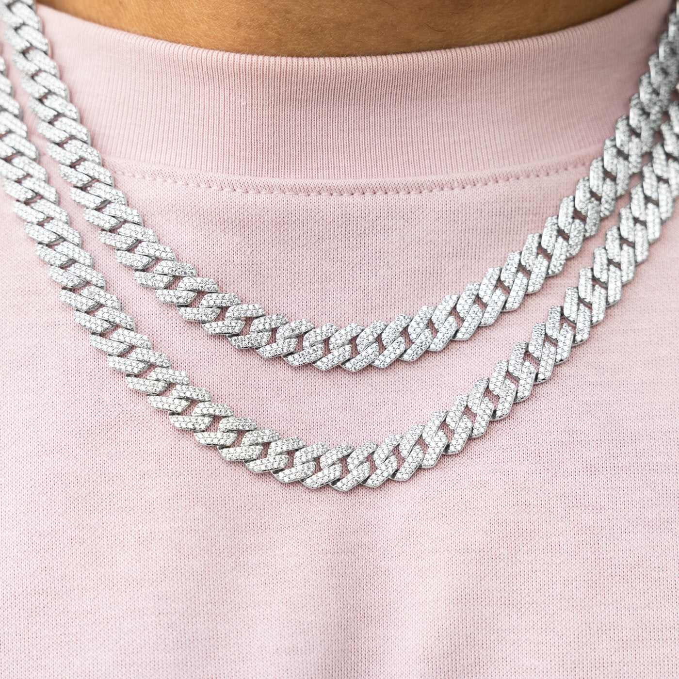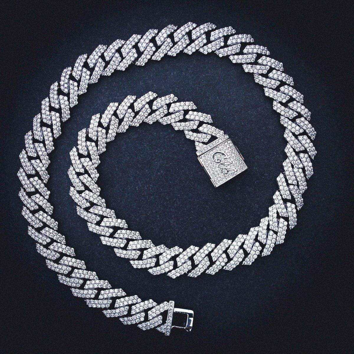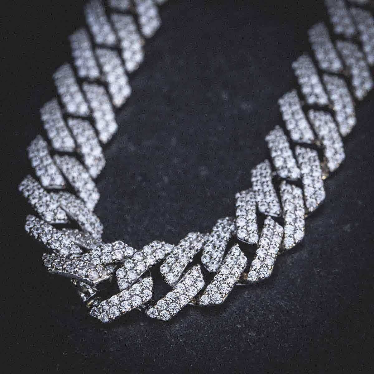 Diamond Prong Link Chain in White Gold - 19mm