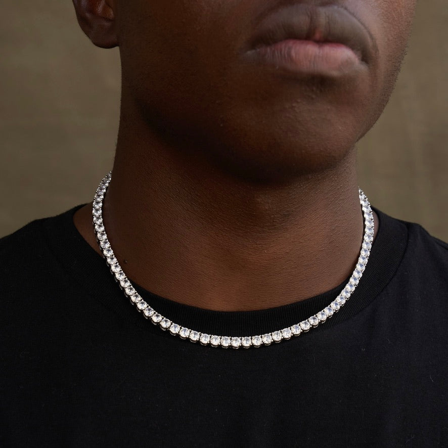Round Cut Tennis Necklace in White Gold - 5mm
