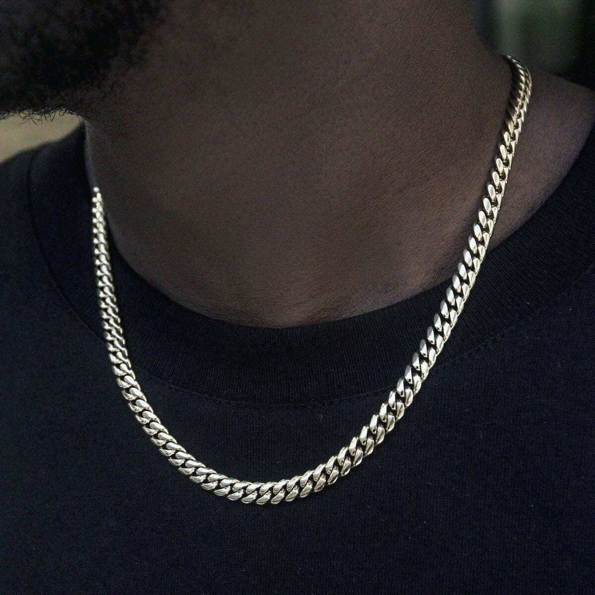 8.5MM Diamond Prong Cuban Necklace - White Gold